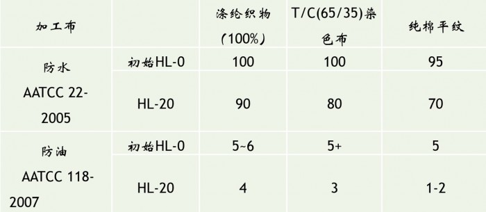 1. 优良的防水性 — HOLPOSON® C8 赋予棉等纤维素纤维、涤纶、尼龙等合纤及其混纺交织物优良的防水性和防油性。